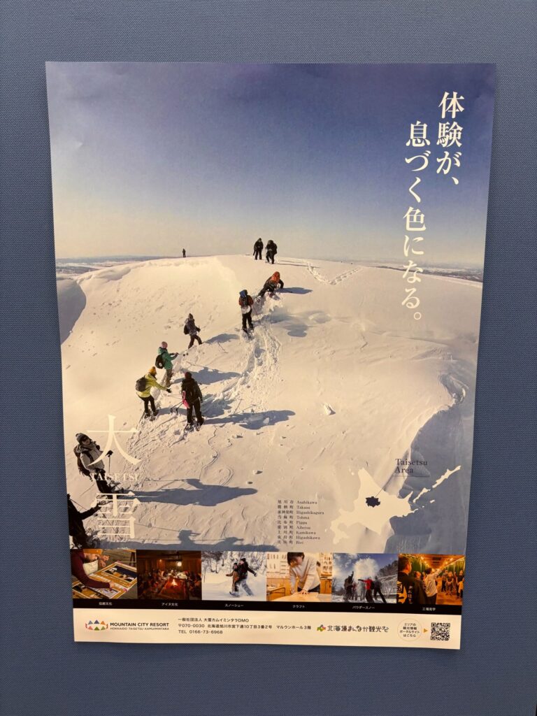 旭川・大雪エリアの各所で掲示することで、このエリアに来た方へ地域の魅力をお伝えするとともに、ここに住む方にも改めて地元も魅力を再確認していただきたいと考えております。