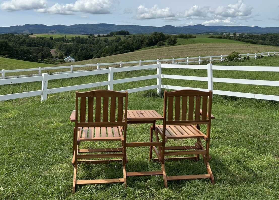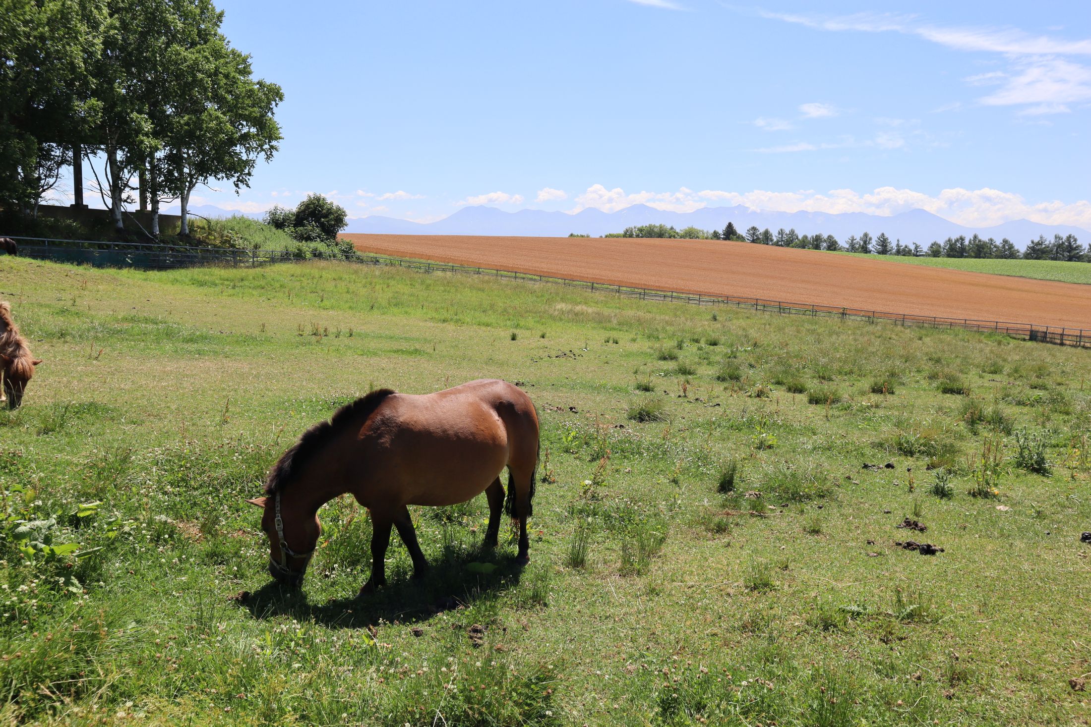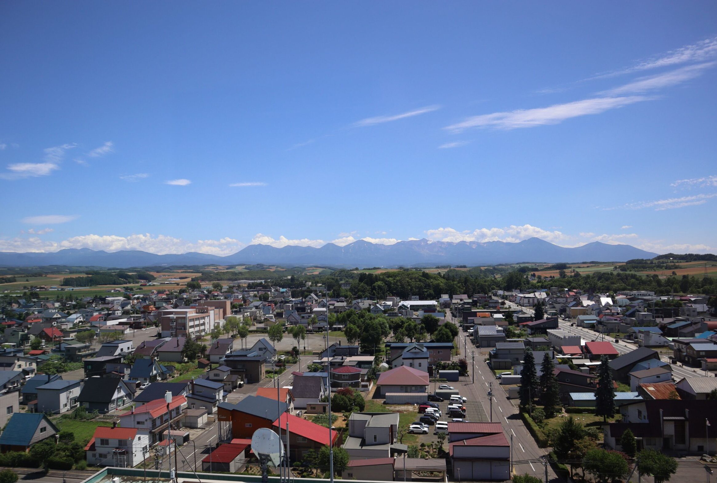 As is typical of Hokkaido, you can see fields of potatoes, corn, and wheat spread all over the area.