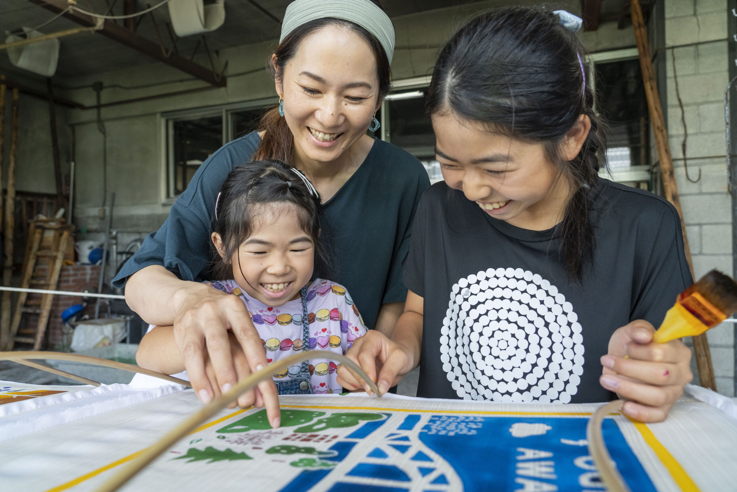 Founded in Meiji 31, the factory has a history of over 120 years, and you can experience the traditional technique “brush drawing book dyeing” that is rare in Japan for large fishing flags.