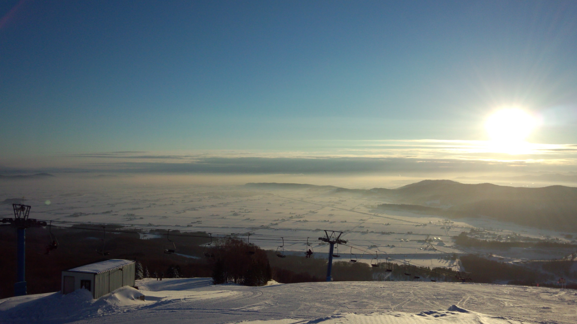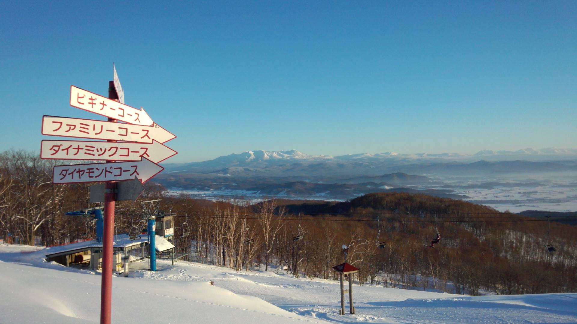 It is a ski resort with a panoramic view of the vast Kamikawa Basin with Mt. Daisetsuzan in the background.
