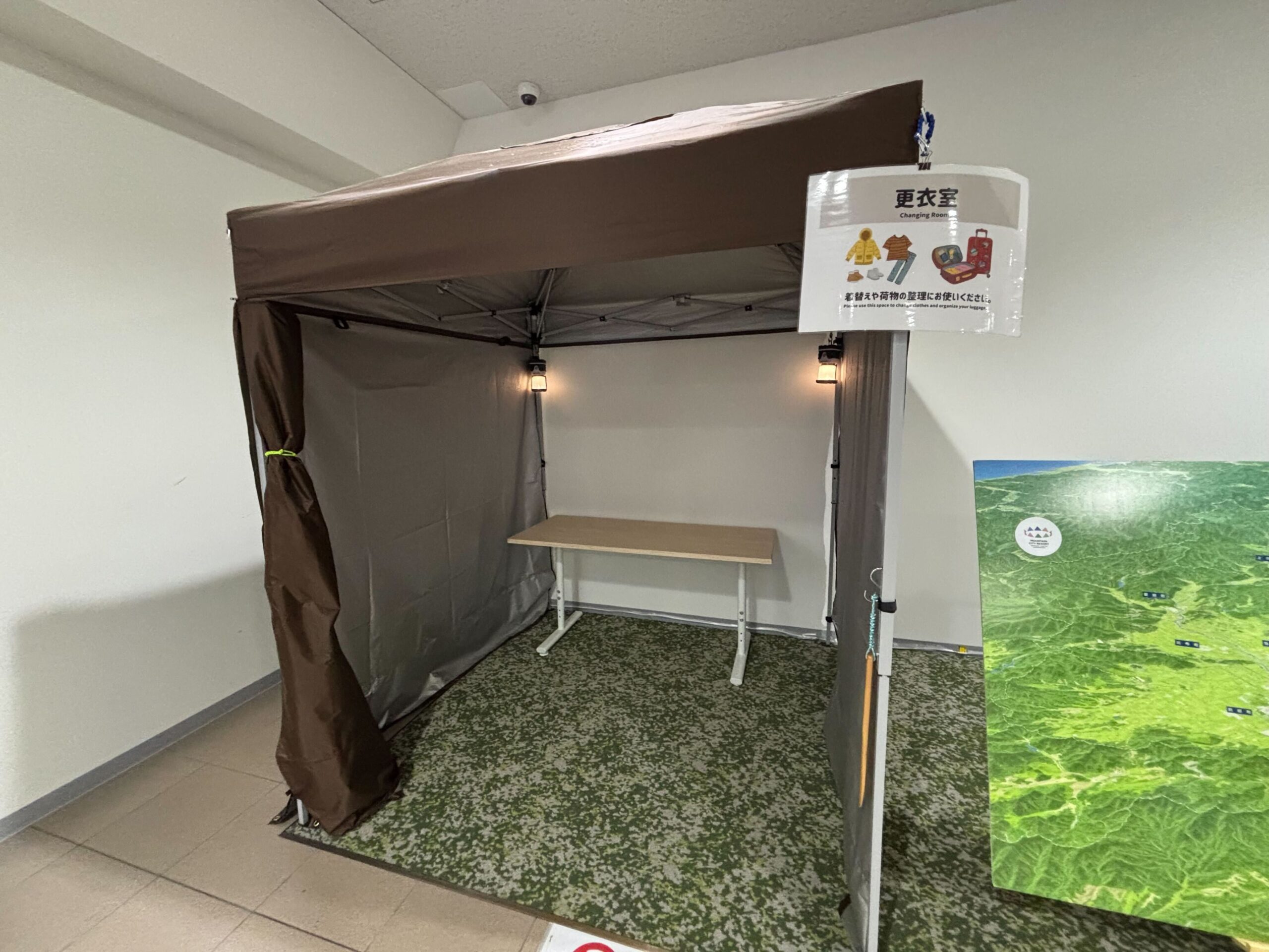 The activity center on the first floor of the arrivals lobby has a changing space.
