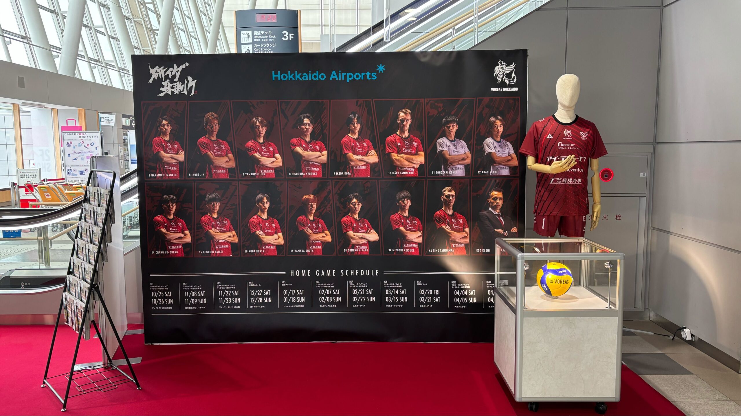 場所は旭川空港1階の到着ロビー横です!隣にはバレーボールチーム【ヴォレアス北海道】のブースもあります。